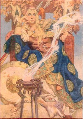 Senhora da arte xamânica do Seidhr, conjunto de práticas utilizadas por suas sacerdotisas (as Volvas ou Freyjas, no caso também chamadas de Seidhkonas – praticantes do Seidhr), as quais, segundo a lenda, foram por ela mesma ensinadas a Odin. Possuidora do colar BRISINGAMEN, equivalente feminino do martelo de Thor, funcionando como proteção, paz e harmonia nos limites dos nove mundos.