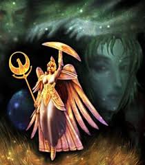 Deusa grega da ordem, da justiça, da sabedoria, das artes e da estratégia, originalmente uma deusa lunar minoana protetora do lar e da comunidade. Ao incorporar as qualidades de uma deusa guerreira grega chamada Pallas, transformou-se em Pallas Atena, a guerreira defensora da cidade de Athenas, filha de Zeus, virgem e assexuada.