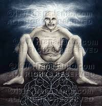 Aqui Shella Na gig é retratada com a face da Deusa anciã em toda a sua glória e sabedoria.